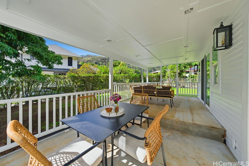 Set on a 12,699 sq. ft. corner parcel in coveted Dowsett, the home's beautifully preserved Colonial Revival facade with beveled siding and board-and-batten detailing opens to interiors that blend old-world character with modern sophistication. Natural light pours across white oak floors, illuminating arched doorways, wainscoting, and bespoke millwork. Designed for today's island lifestyle, the home offers seamless indoor-outdoor living with multiple lanais for dining and entertaining amid lush gardens that evoke Nu'uanu's timeless serenity.