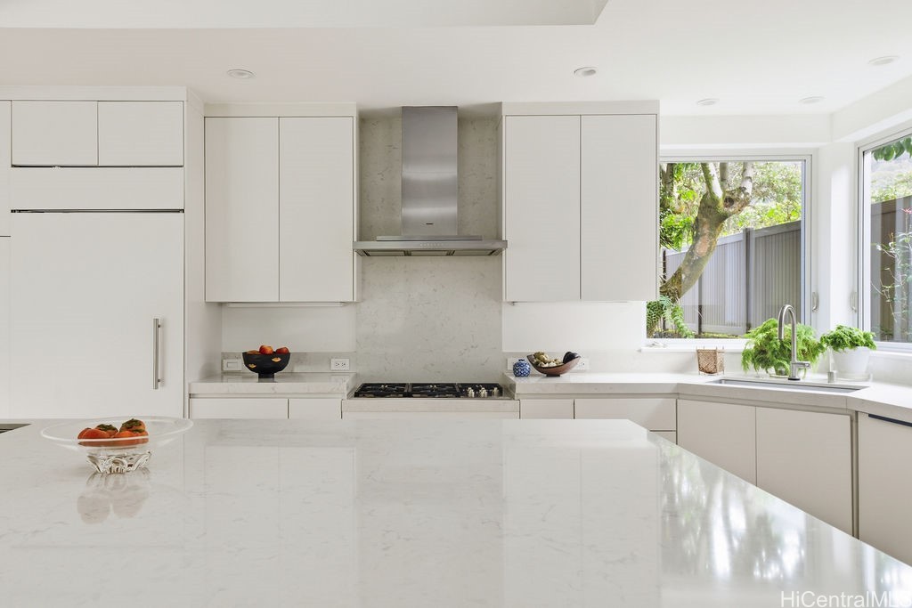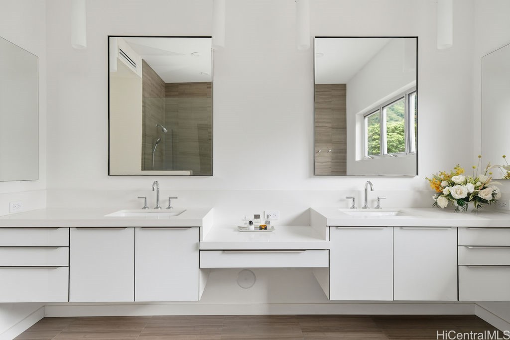 In the coveted enclave of Nuuanu--where lush valley greens embrace timeless sophistication--stands a Kamaaina Contemporary Landmark by award-winning architect Geoffrey Lewis. Completed in 2015, this architecturally significant six-bedroom, four-and-a-half-bath residence is set within expansive, private gardens envisioned by landscape architect Steve Mechler, creating a sanctuary of rare beauty and seclusion. Thoughtfully designed for both comfort and grandeur, the home features two primary suites--each a private retreat--along with a dedicated guest wing that offers the perfect balance of connection and privacy for visitors. Sublime indoor-outdoor living defines the experience, with soaring volumes and sculptural lines giving way to lanais and gardens that blur the boundaries between house and nature. A 5 car garage and 128 owned PV panels add efficiency and sustainability to this exceptional home. Every space has been composed with intention, offering moments for quiet reflection as well as luminous celebration. More than a house, this is a stage for a life well-lived:a place to surround yourself with beauty, to gather those you love, and to mark life's most unforgettable milestones.